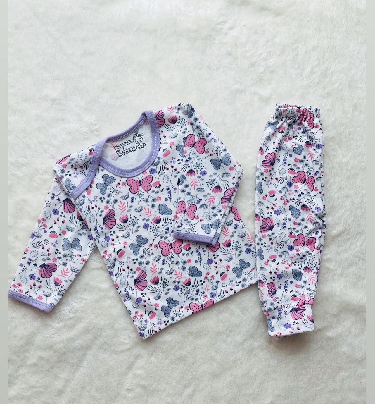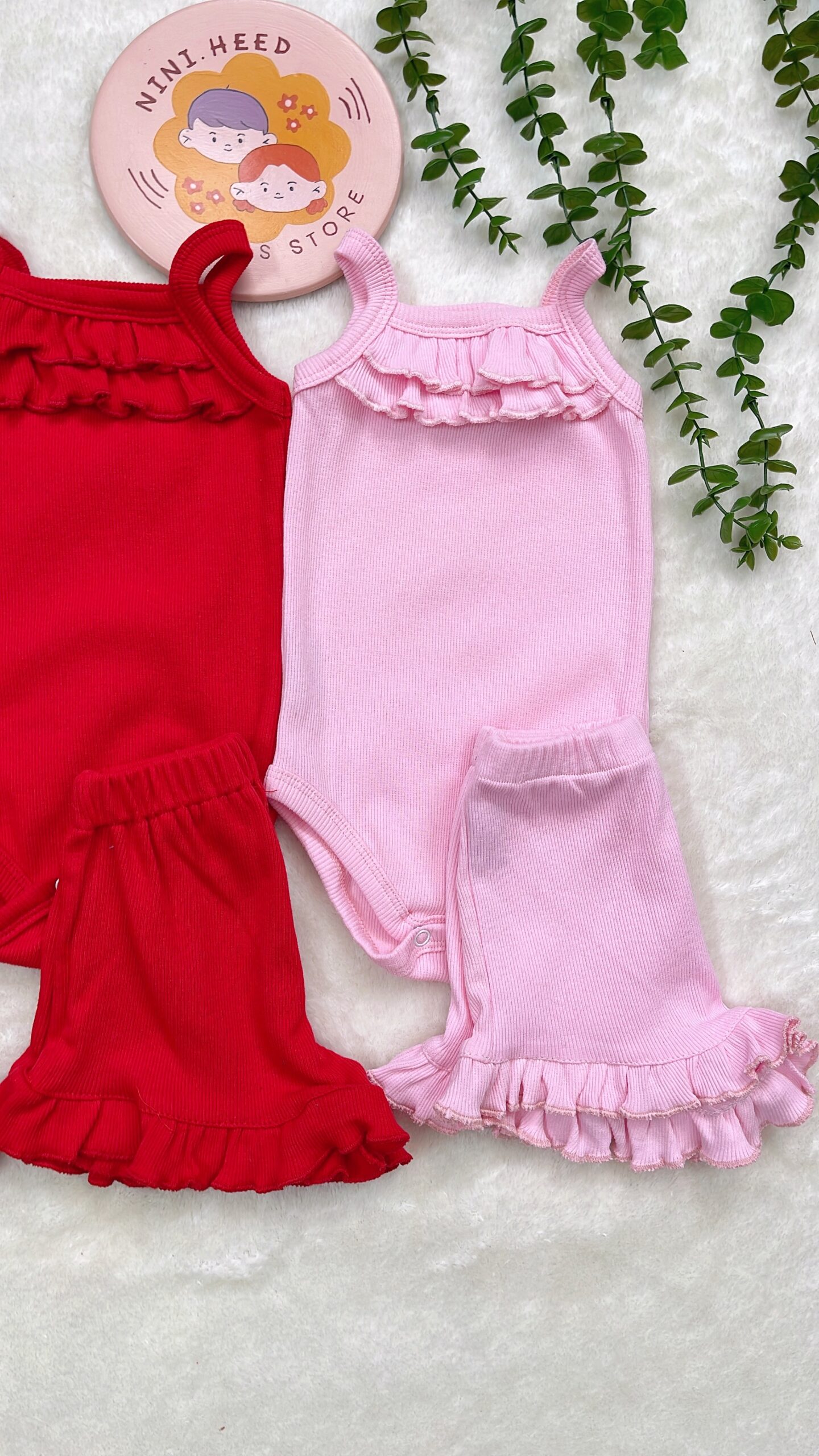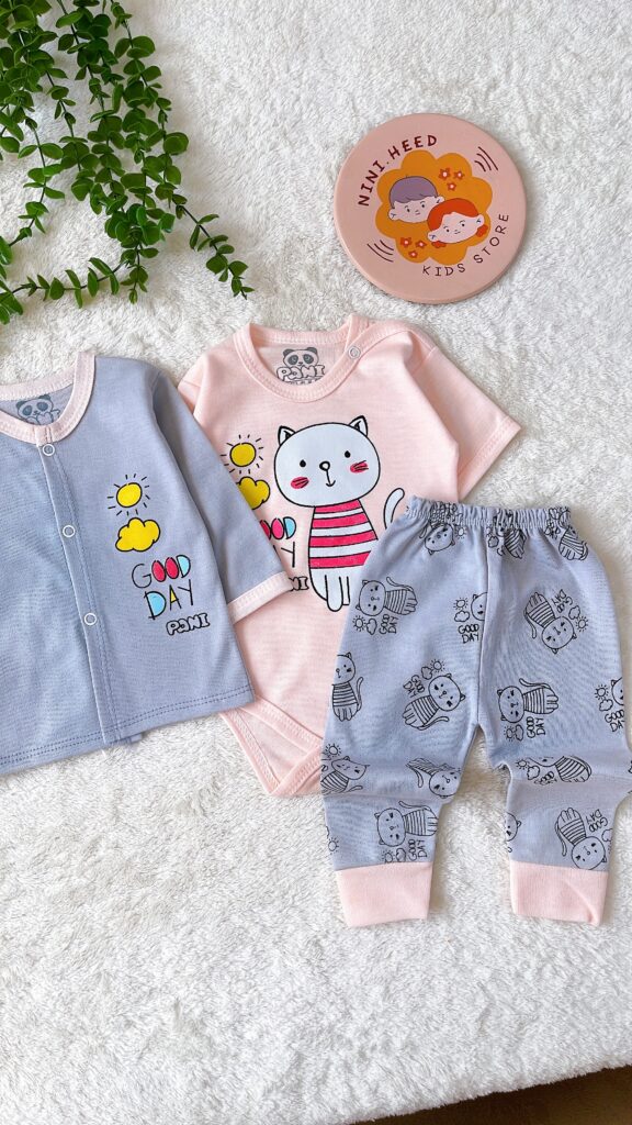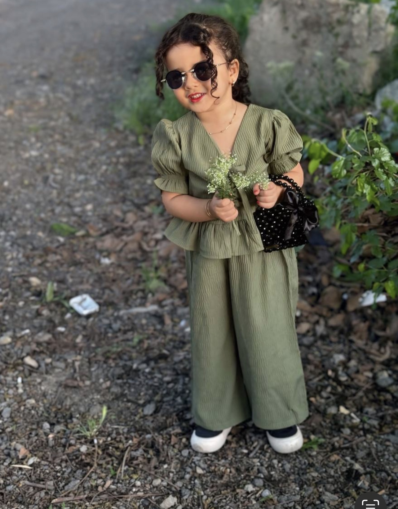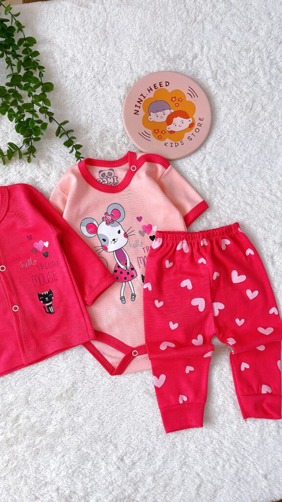 سه تیکه دخترانه ( بادی استین کوتاه+شلوار+ جلو دکمه )
