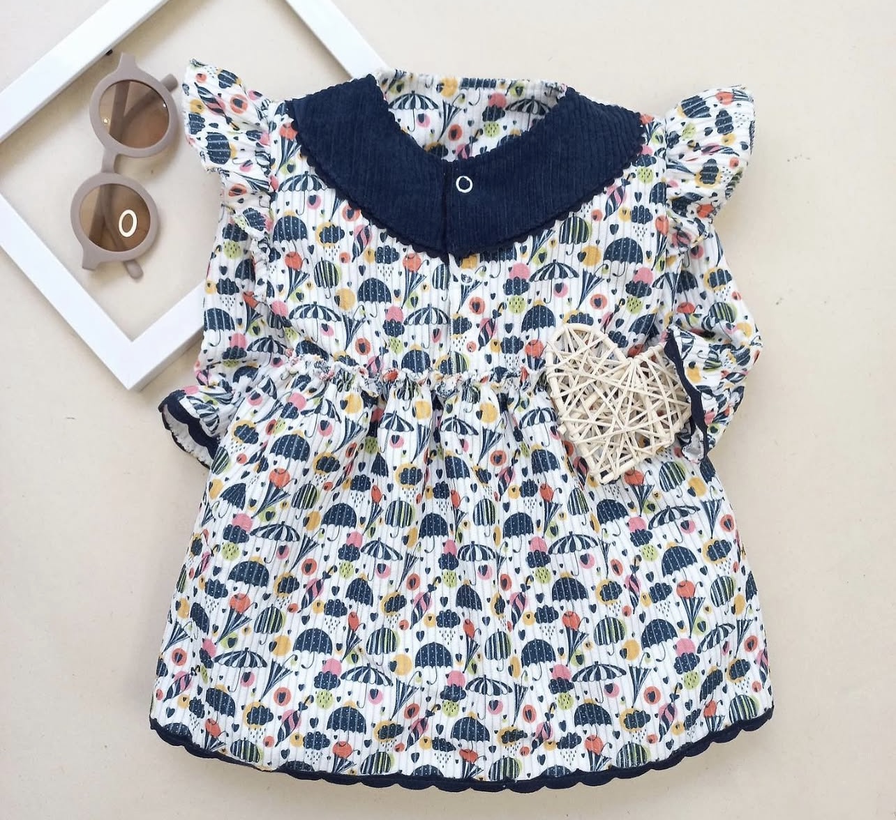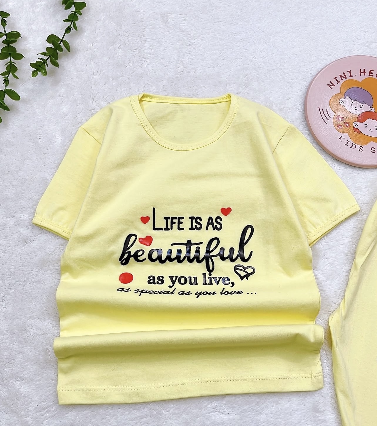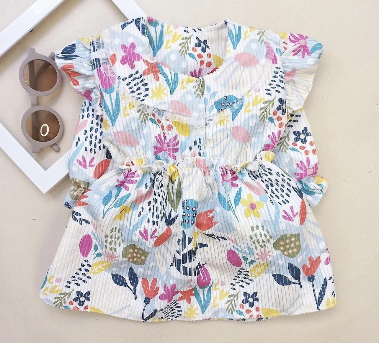 سه تیکه دخترانه ( بادی استین کوتاه+شلوار+ جلو دکمه )