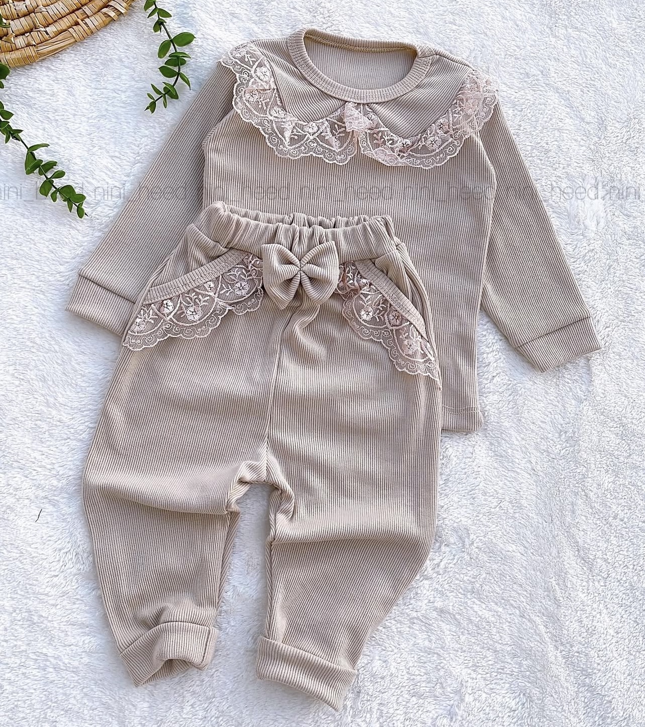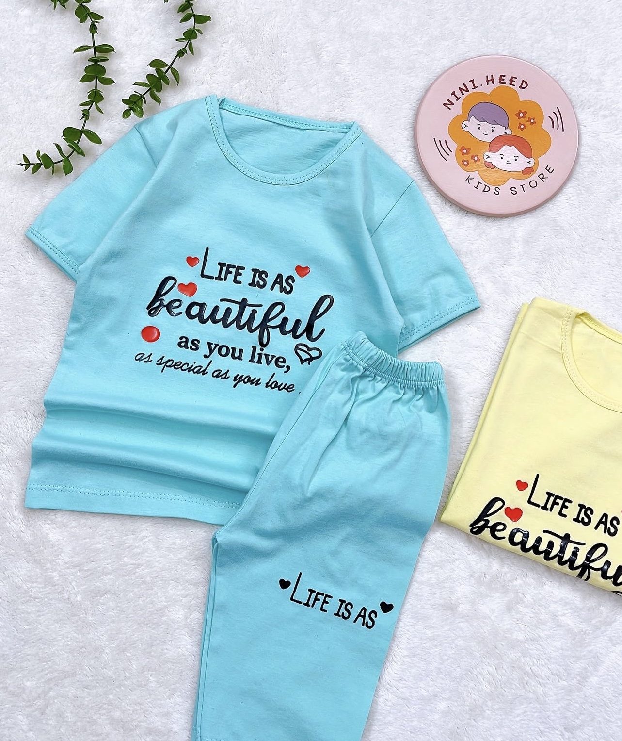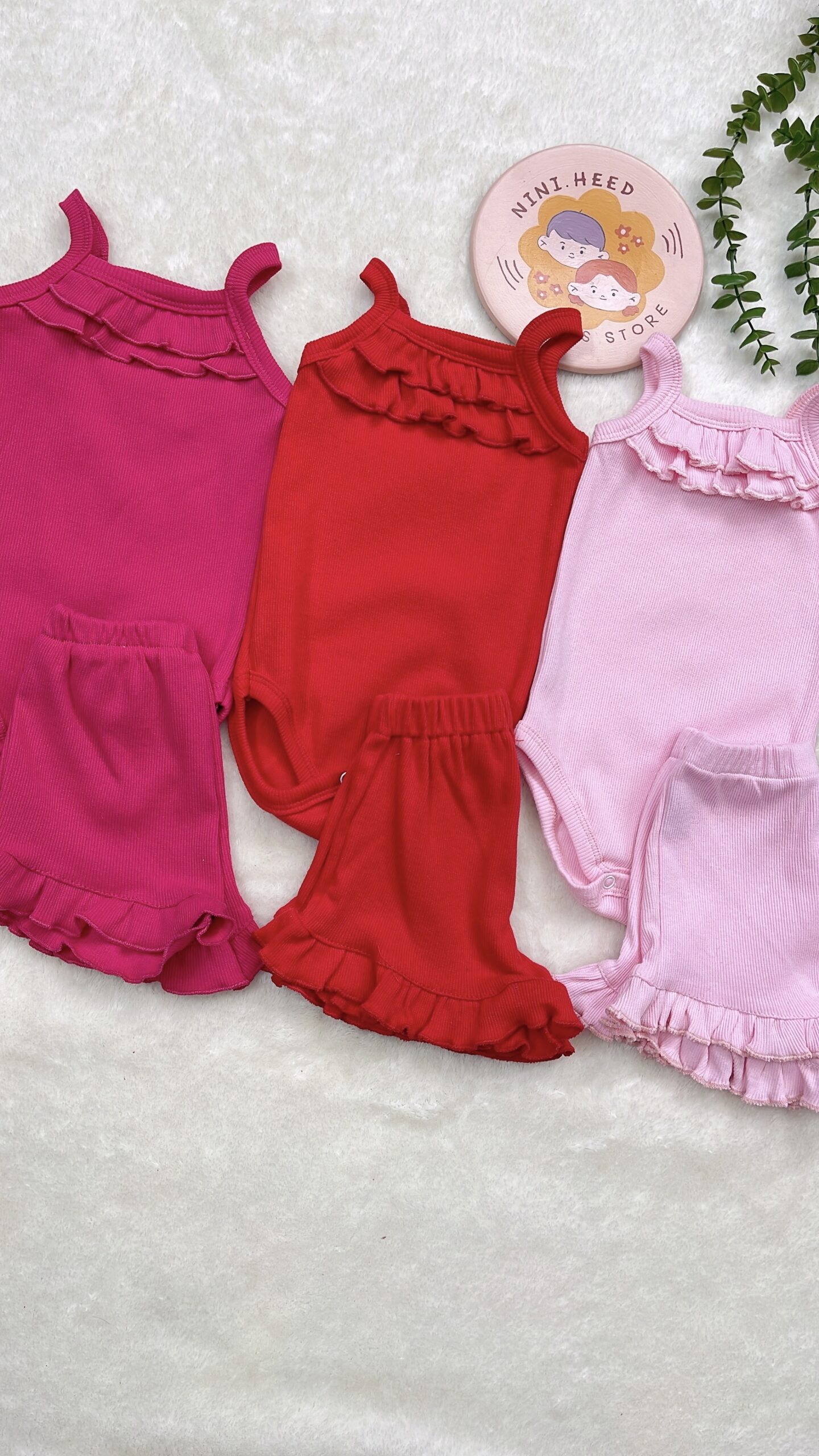 سه تیکه دخترانه ( بادی استین کوتاه+ شلوار+ جلو دکمه )