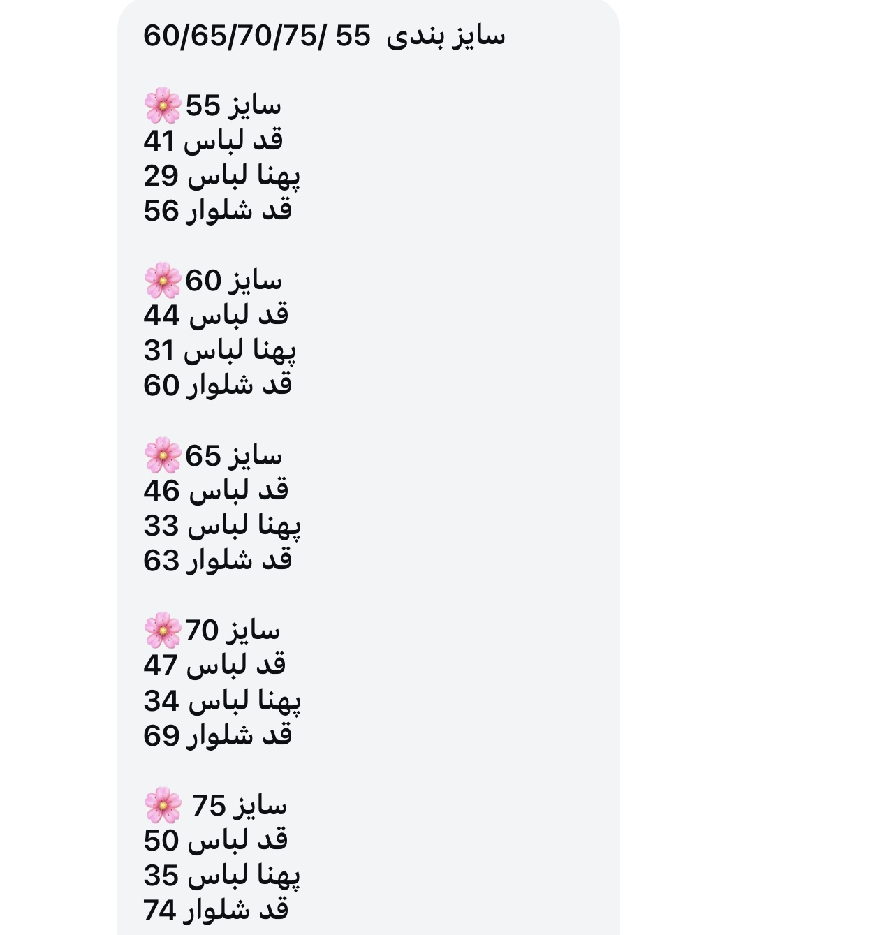 سایز ۵۵ ,سایز ۶۵ ,سایز ۷۰ ,سایز ۷۵ |